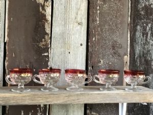 Cranberry glass drink cupsThese little cuties would be nice if you collect them OR add a little pin cushion to them ~ the possibilities are endless!